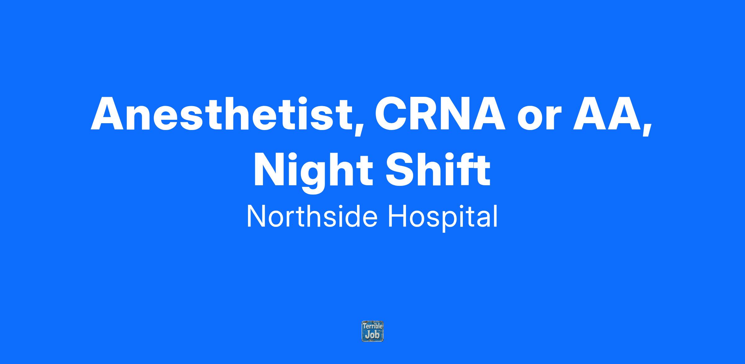 At Northside Hospital Gwinnett & Duluth, we are currenltly hiring for Full-Time night shift CAAs and CRNAs. We have a wide variety of scheduling opportunities to ensure we best fit your needs!