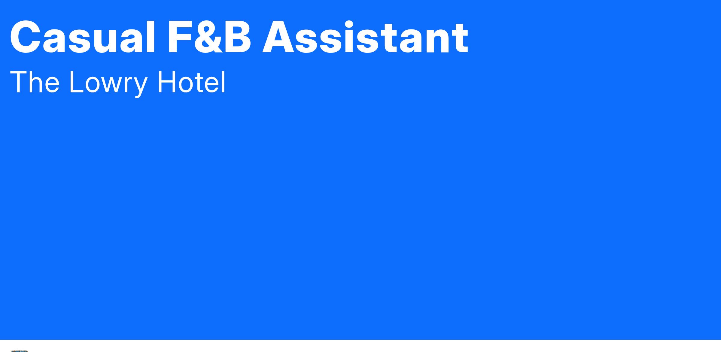 An exciting new casual vacancy of Food and Beverage Assistant has arisen within The Lowry Hotel - Manchester’s Iconic five-star hotel. As part of the food and beverage team you will be working with a British Classic Menu that it is influenced by locally sourced produce. As a Food and Beverage Assistant you will work in the River Restaurant, Lowry Lounge and Bar and Room Service department for The Lowry Hotel. The River Restaurant has been commended with 2 AA rosettes and aims to provide contemporary surroundings with fine dining in a relaxed setting. Live entertainment is provided most evenings and during Sunday lunch.