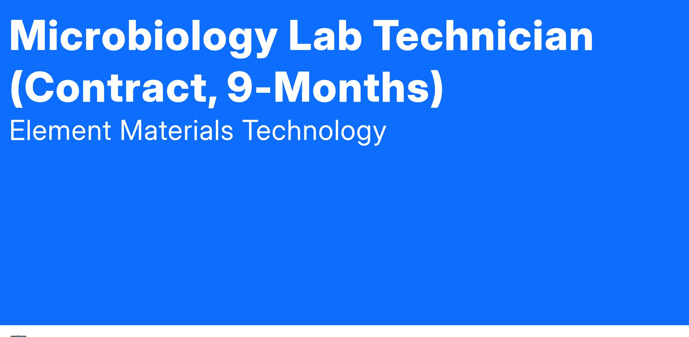 Element Calgary has an opportunity for a Microbiology Technician whose primary responsibility is to support laboratory operations by conducting the relevant microbiological testing.