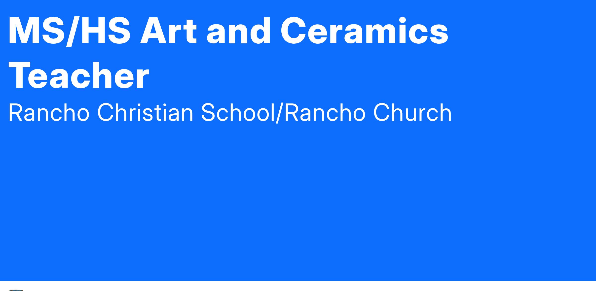 MS/HS Art and Ceramics Teacher