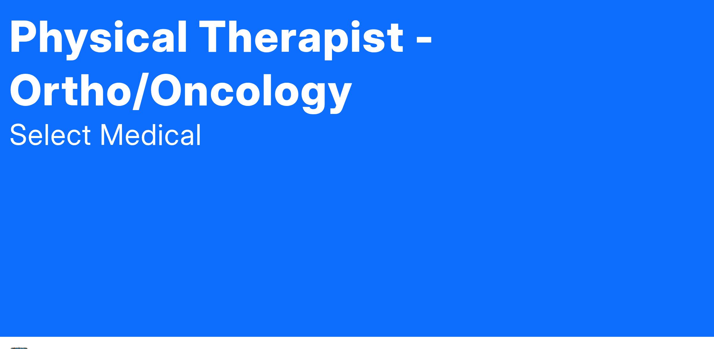 Select Medical is committed to having a workforce that reflects diversity at all levels and is an equal-opportunity employer. Qualified applicants are considered for employment, and employees are treated during employment without regard to race, color, religion, national origin, citizenship, age, sex, sexual orientation, gender identity, marital status, ancestry, physical or mental disability, veteran status, or any other characteristic protected under applicable law.